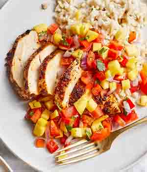 Chicken with Mango Salsa + Rice